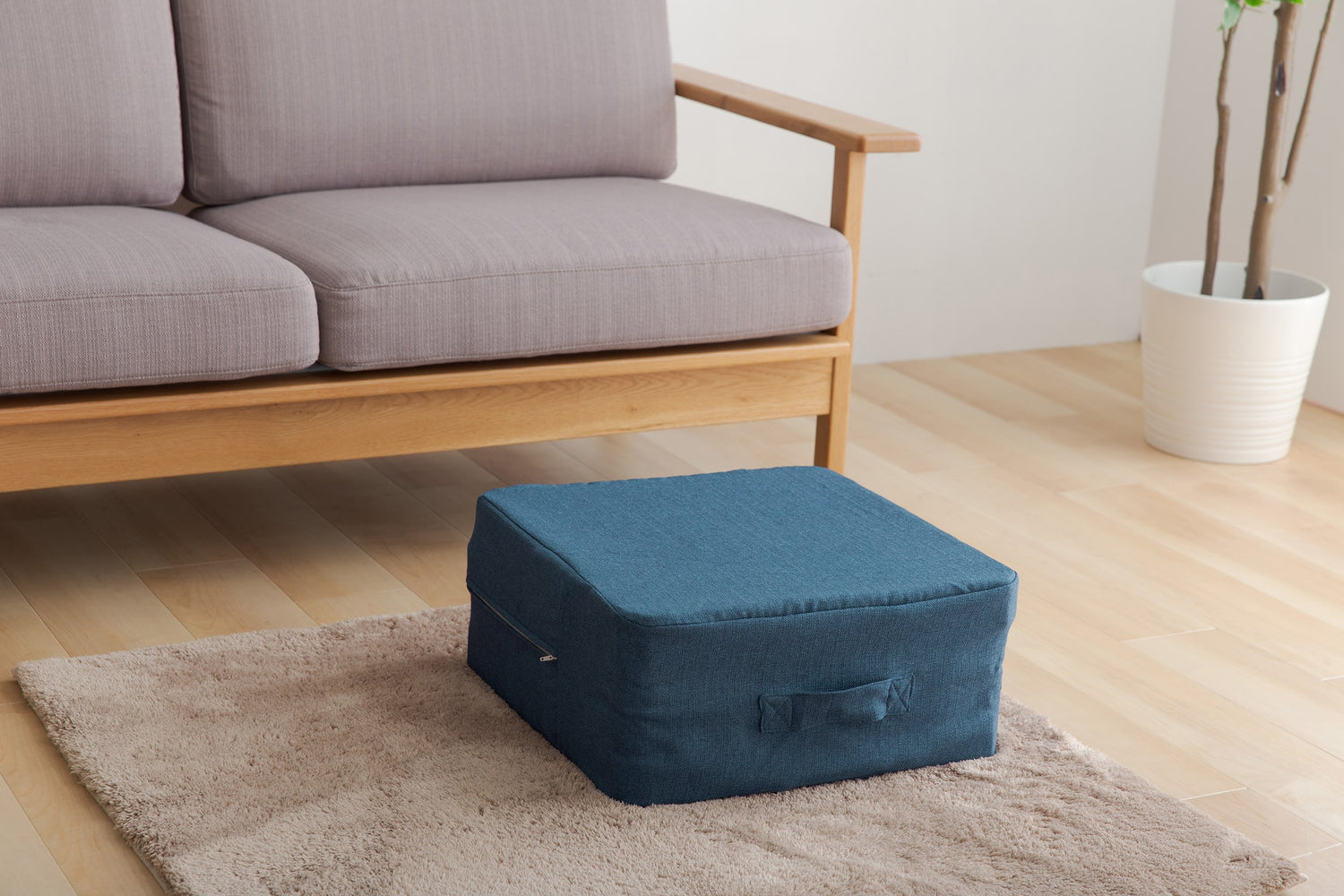 コーナーソファー ブルー マット付き 洗えるカバー ホットカーペット使用可 床暖房使用可 フロアソファー 日本製