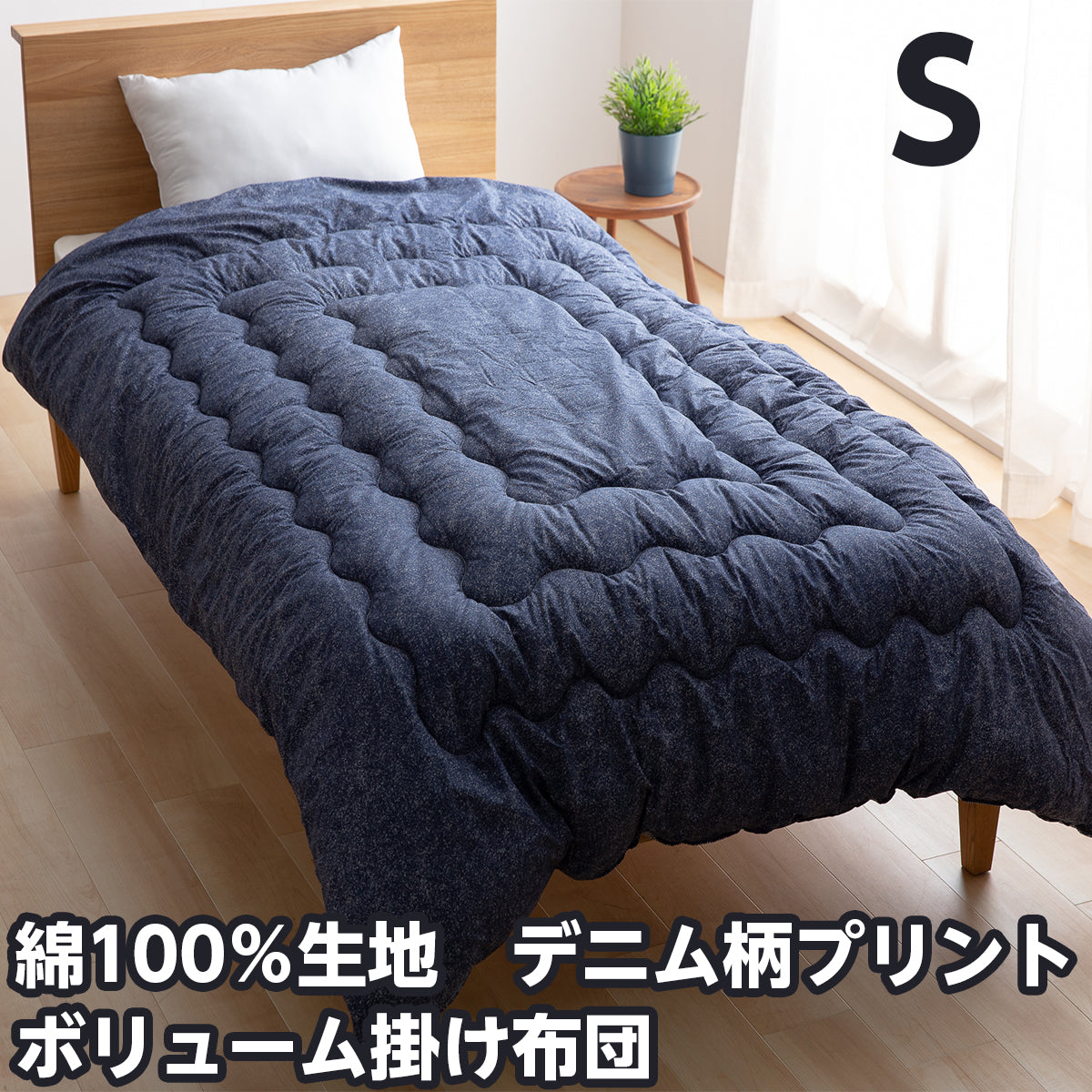 綿100%生地 デニム柄掛け布団 シングルサイズ/セミダブルサイズ/ダブルサイズ