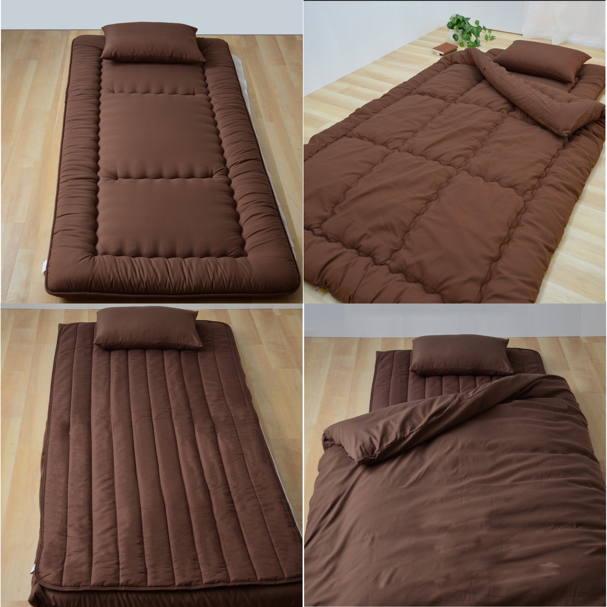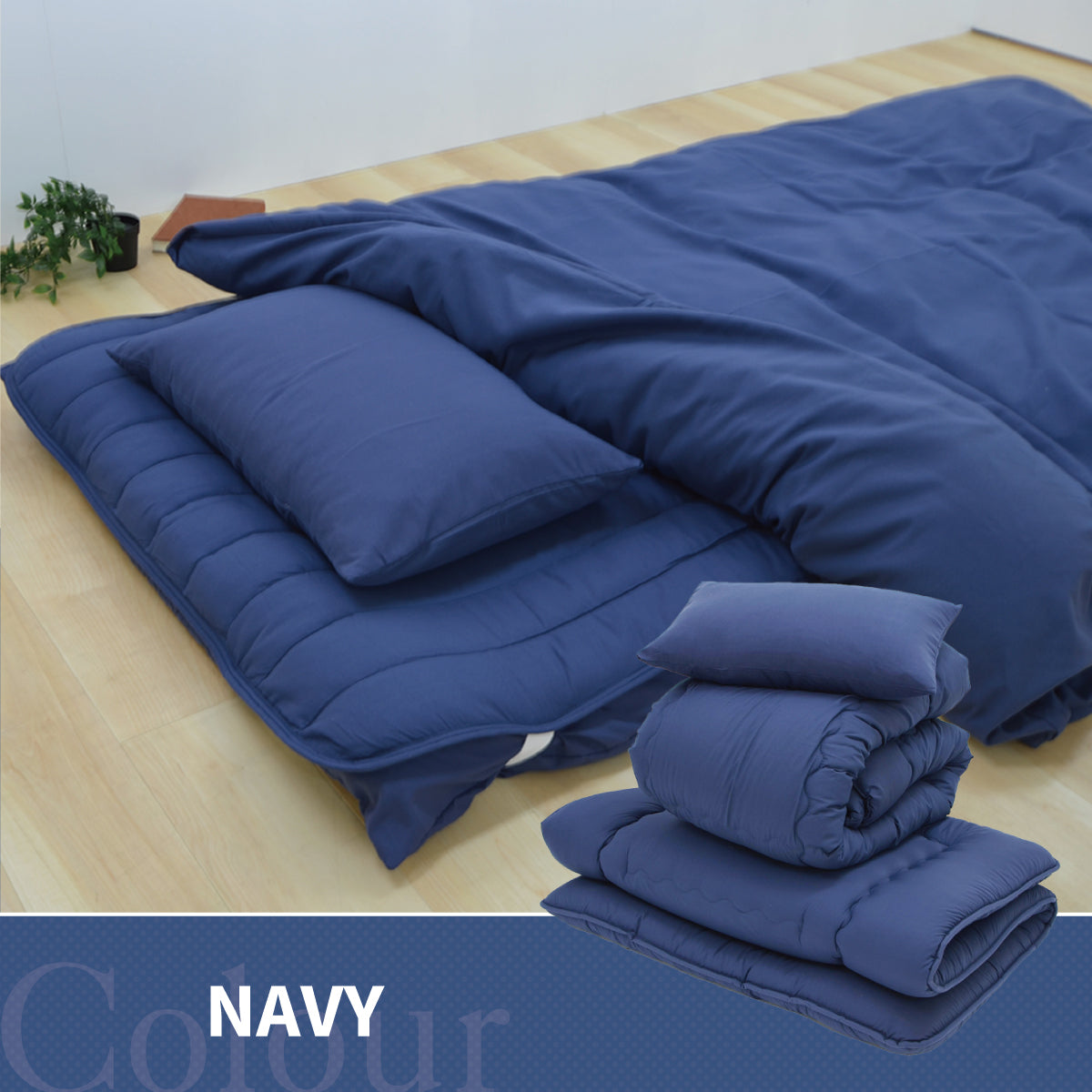日本製布団セット 寝具セット(シングル・セミダブル・ダブル)ボリューム掛布団 3層式敷き布団 低反発チップ入り枕 ふとんカバーセット 除湿シート 敷パッド 収納袋入り