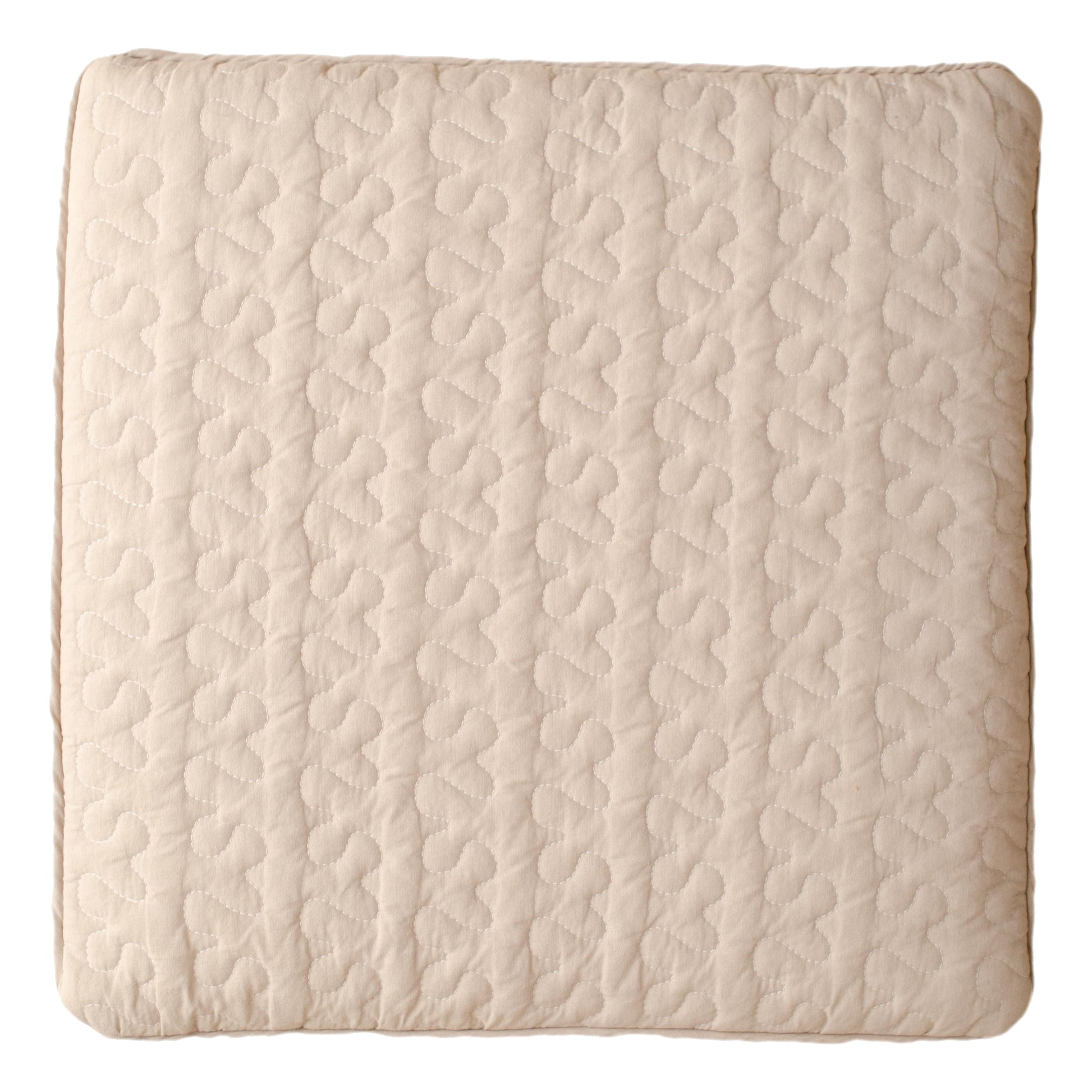 【モコモコふわふわの心地いいキルティング】水洗いした綿生地の間にポリエステルわたをサンドイッチしてキルティングしているので、綿のナチュラルな肌ざわりとともに、もこもこの感触も楽しめます。 遊んだり、寝転んだり、ハイハイしたり、子どももおとなも自然と笑顔があふれるやさしい風合い。 汗っかきだったり、汚しがちな小さいお子様がいらっしゃるご家庭でも洗濯できるので安心です。