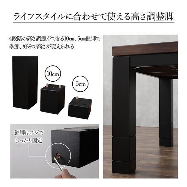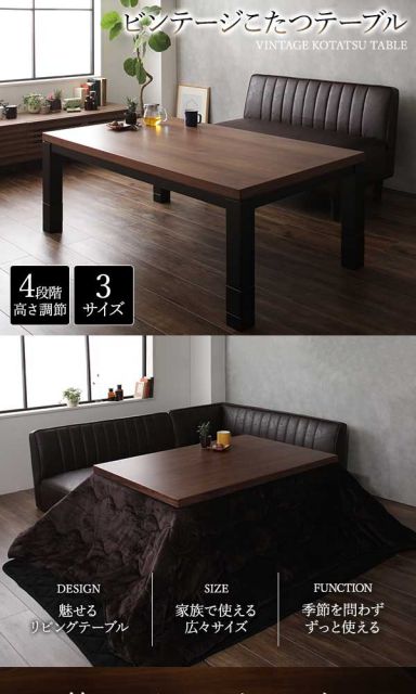 こたつ オールシーズン センター テーブル ビンテージ モダン 頑丈 デザイン 継脚 高さ調整 4段階 高機能 カーボン ヒーター 長方形 幅 120 cm組立品代引NG