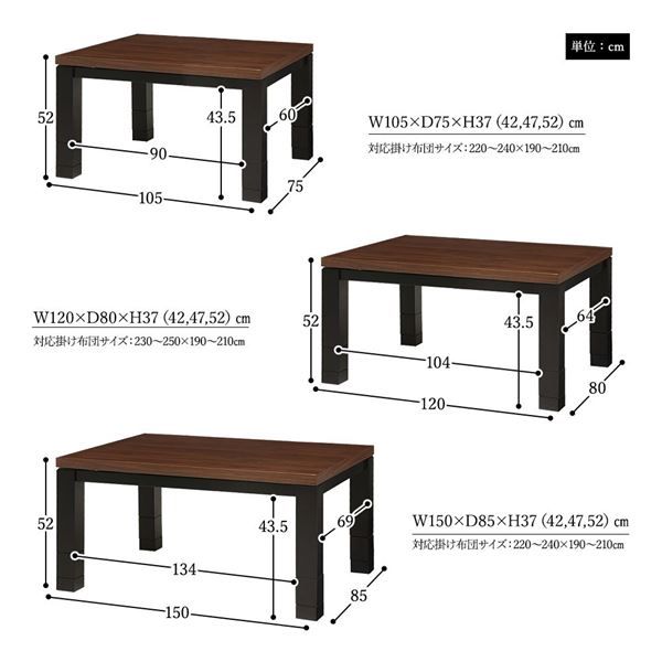 【サイズ】幅105×奥行75×高さ37/42/47/52cm