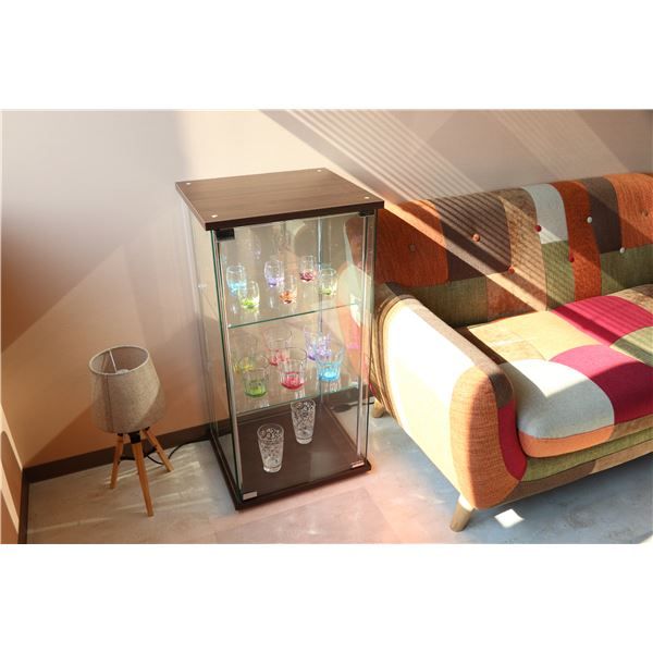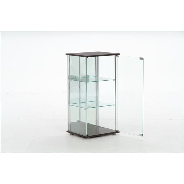 ガラス製 コレクションケース ショーケース 3段 幅42.5cm ブラウン 背面ミラー付き 硝子製棚板2枚 脚付き リビング 店舗 お店代引NG