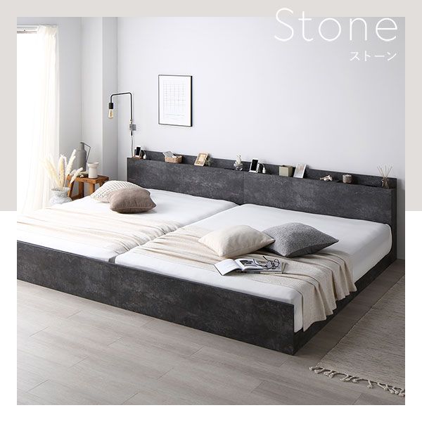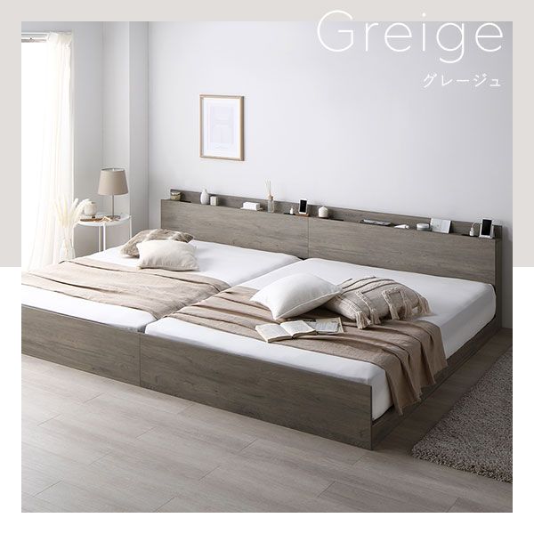 ベッド ワイドキング 240 S+D ベッドフレームのみ ストーングレー 連結 高さ調整可 コンセント 宮付 宮棚付 棚付 すのこ ベッドフレーム ローベッド すのこベッド フロアベッド 連結ベッド ベット 寝具 インテリア家具 ベッドルーム 寝室