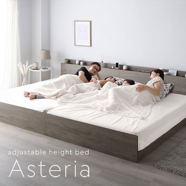 ベッド ワイドキング 200 S+S 2層ポケットコイルマットレス付 ストーングレー 連結 高さ調整可 コンセント 宮付 宮棚付 棚付 すのこ ベッドフレーム ローベッド すのこベッド フロアベッド 連結ベッド ベット 寝具 インテリア家具 ベッドルーム 寝室