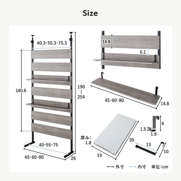 45cm幅:幅45×奥行26×高さ190〜254cm