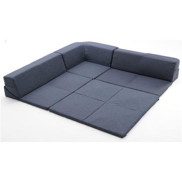 コーナーソファー ブルー マット付き 洗えるカバー ホットカーペット使用可 床暖房使用可 フロアソファー 日本製