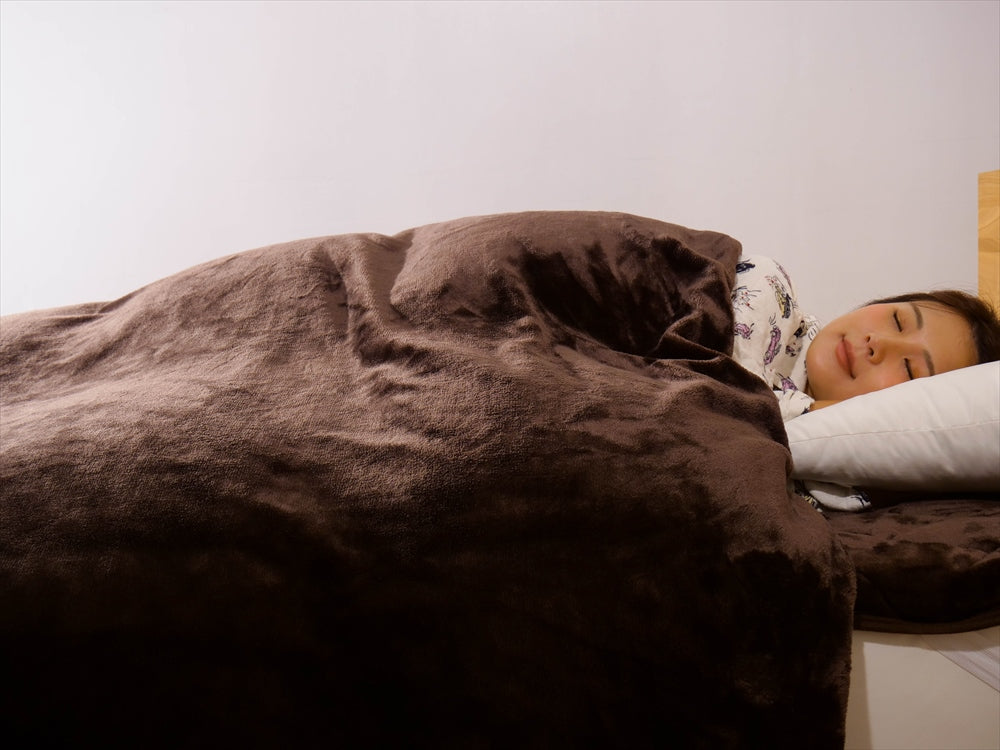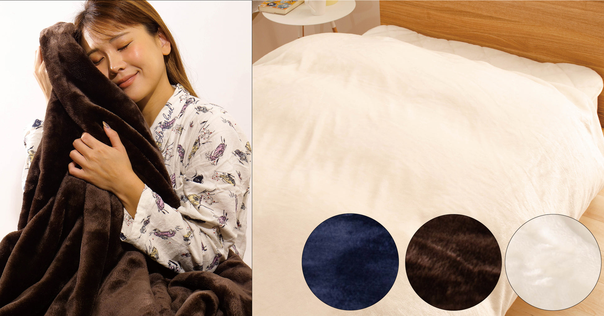 上質なフランネル素材の毛布を2枚合わせて作ったカバーだからセットするだけで布団が丸ごとあったかい。中にあったかい空気をたくさんため込むことができるので、