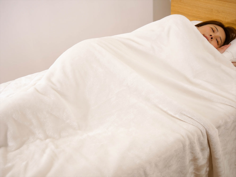 【毛布で作ったカバーだから毛布がずれない】掛け布団カバー式の毛布なので、はだけたり毛布がずれて寒い思いをすることがありません。
