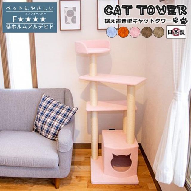 スーパSALE10倍&4時間限定10%OFF 椅子職人が作るハウス付きキャットタワー国産 日本製 Colline コリーヌ
